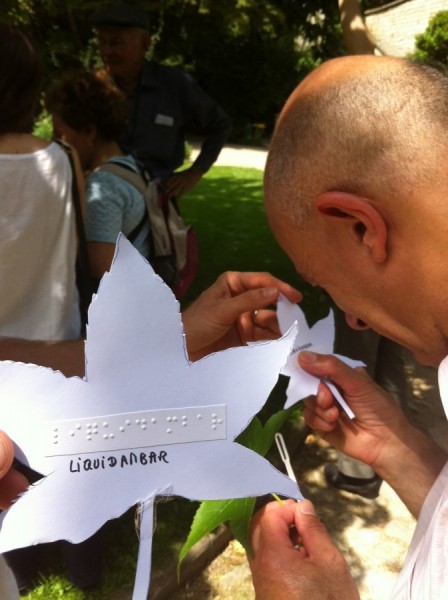 Dans le cadre du groupe de travail "Balade Urbaine Accessible" coordonné par Vivacités Ile-de-France, nous avons pu créer des outils permettant aux mal-voyants et aux non-voyants de se repérer, d'identifier les espèces de plantes et d'apprécier les repères du parcours symbolique de la Bièvre (carte tactile, herbiers tactiles, moulages,...).