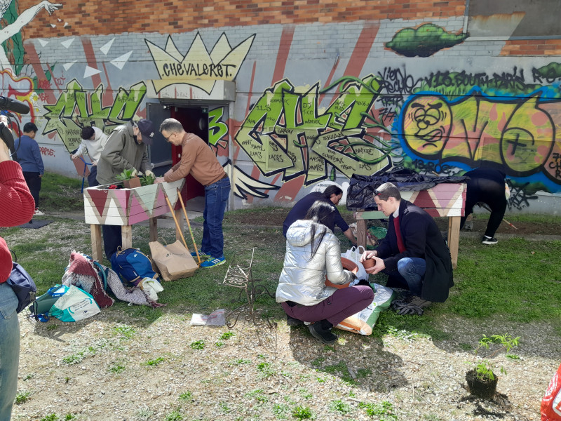 Le 8 avril 2023 a eu lieu le premier atelier du projet de création d'un jardinet mobile pour la cour de la résidence Chevaleret. Les réésident ont pu fabriquer des jardinières mobiles et réaliser les premières plantations. Ils ont aussi pu émettre des idées pour l'aménagement du jardinet.