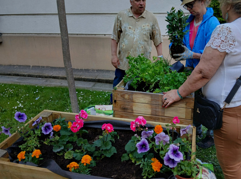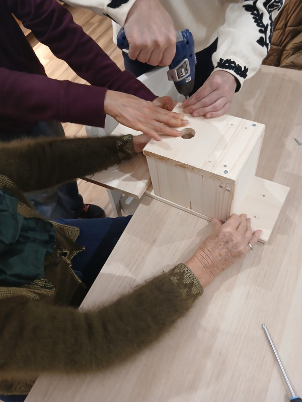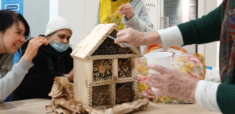 Depuis l'automne 2024, nous accompagnpns la mise en place au niveau de la résidence Paris Habitat Porte de Vitry d'une dynamique de jardinage collectif avec les résidents. Des plantations ont été effectuées dans les espaces enherbés, des bacs potagers sur pied ont été installés et l'hiver a été consacré à un travail sur l'accueil de la biodiversité (fabrication et installation de nichoirs, hôtel à